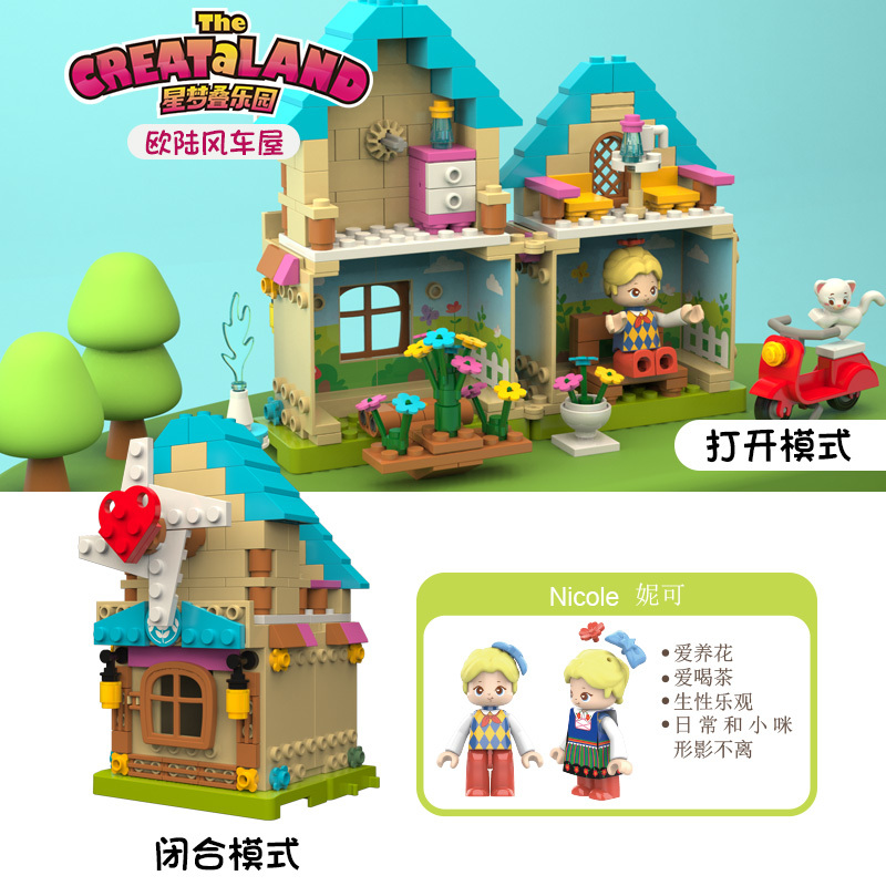 有一種風(fēng)景,靜靜的豎立在地平線上,遠(yuǎn)遠(yuǎn)望見(jiàn),仿佛置身于童話世界一般,它就是聞名世界的歐陸風(fēng)車(chē)。風(fēng)車(chē)屋除了出現(xiàn)在荷蘭,它還出現(xiàn)在很多的動(dòng)畫(huà)作品中,呈現(xiàn)出一幅幅平靜、舒適的畫(huà)面。讓小朋友把來(lái)自異國(guó)風(fēng)情的風(fēng)車(chē)屋搬回家吧,用雙手搭建出綠色的草地、黃色的磚墻、藍(lán)色的屋頂,白色整潔的風(fēng)車(chē),屋里屋外,都是被綠草小花環(huán)抱,轉(zhuǎn)動(dòng)的風(fēng)車(chē),仿佛也能轉(zhuǎn)動(dòng)兒童內(nèi)心的歡樂(lè),讓孩子們聯(lián)想到綠波搖動(dòng)的草原,聯(lián)想到晴朗的藍(lán)天,還能聯(lián)想到河流水田……