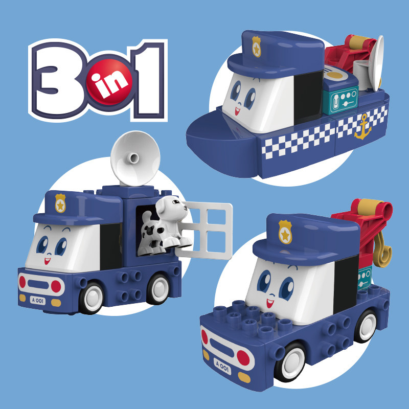 萌車小隊,是一款智能電子積木。采用三合一設計,一輛萌車,可拼搭成3種不同造型。擁有豐富的主題場景,激發寶寶自由想象和積極探索。配套動感驅車座,內含電子模塊,可以360度動感轉向,還能播放音樂音效,讓寶寶拼好的積木動起來。